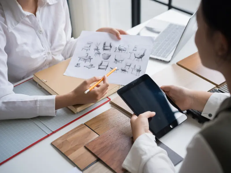 The tactile phase. We visit showrooms together to touch, feel, and lock down the actual finishes.